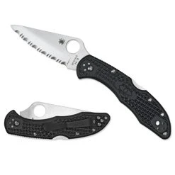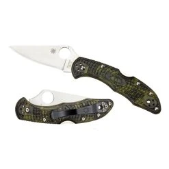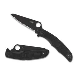 The Spyderco Enuff fixed blade knife features a full tang skeletonized rustpoof satin H-1 blade. Built with a fully serrated sheepfoot blade, that gives you a fully radiused profile and aggressive rescue style blade that is perfect for safely cutting seat belts, webbing, rope, and similar materials in the high stress of a critical incident. At the same time, it features a subtle but functional point for detailed chores. The jimping on the spine provides even more blade control. The injection molded scales of fiberglass reinforced nylon have a nice swell that give you a superior grip when combined with the signature Bi-Directional Texturing pattern. A generously sized lanyard hole also allows the attachment of a fob or lanyard for additional security. Comes with a superior injection molded sheath that snaps the knife in tight when sheathed. The sheath has a versatile Spyderco G-Clip for multiple carry options.