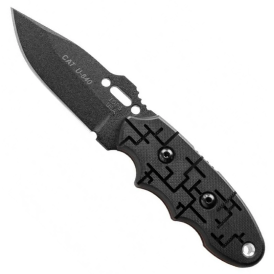 The TOPS Knives C.A.T. (Covert Anti-Terrorism) knives are ideal for military, LE, hunters, campers and bushcrafters. This version includes the new Cryptic Cyber Scales made from Black G10 with a textured finish for maximum grip. The cryptic cut out pattern on the handle scales give it a unique look. This knife gives you a easy to conceal blade that can save lives in the right scenario and with the right training. The black traction coated 1095 high carbon steel blade has a hunter’s point which allows for good piercing and slashing cuts. Ideal for tactical uses, this knife is also perfect for EDC. Comes with a kydex sheath with a rotating clip. Made in the USA.