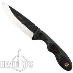 The TOPS Knives Mini Scandi descends from the Finnish sami knife used by the Laplanders for all their hunting and bushcraft tasks. The Mini Scandi will quickly become your favorite bushcraft knife with the modified Scandi grind of 10 degrees. It also has Black and Green G10 handle scales for a comfortable, secure grip. This small knife is easily packed and can even be neck carried. All of the advantages of a large Scandi knife built to fit in your pocket or pack. Comes with a Kydex sheath. Made in the USA.